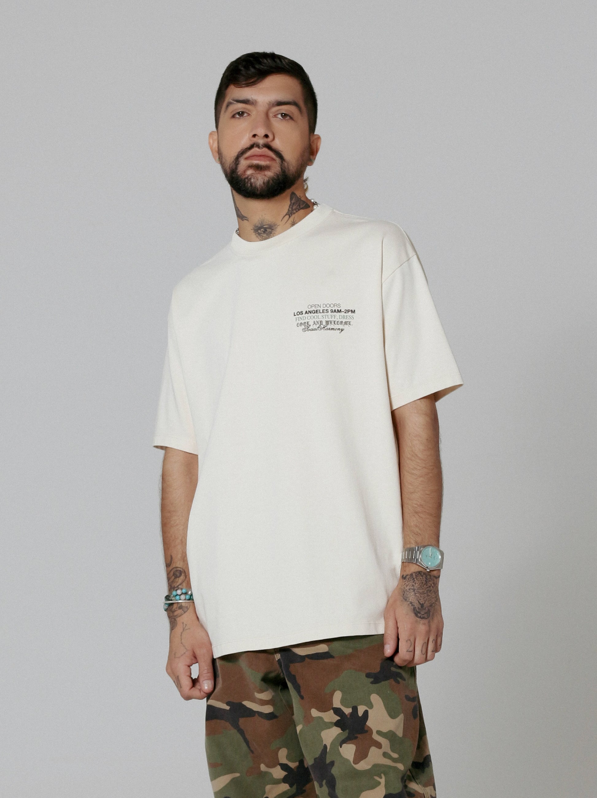 Provocación directa, sin filtros. Camiseta beige con mensaje tipográfico trasero contundente. Fit relajado y algodón de alta calidad que equilibra fuerza y comodidad.