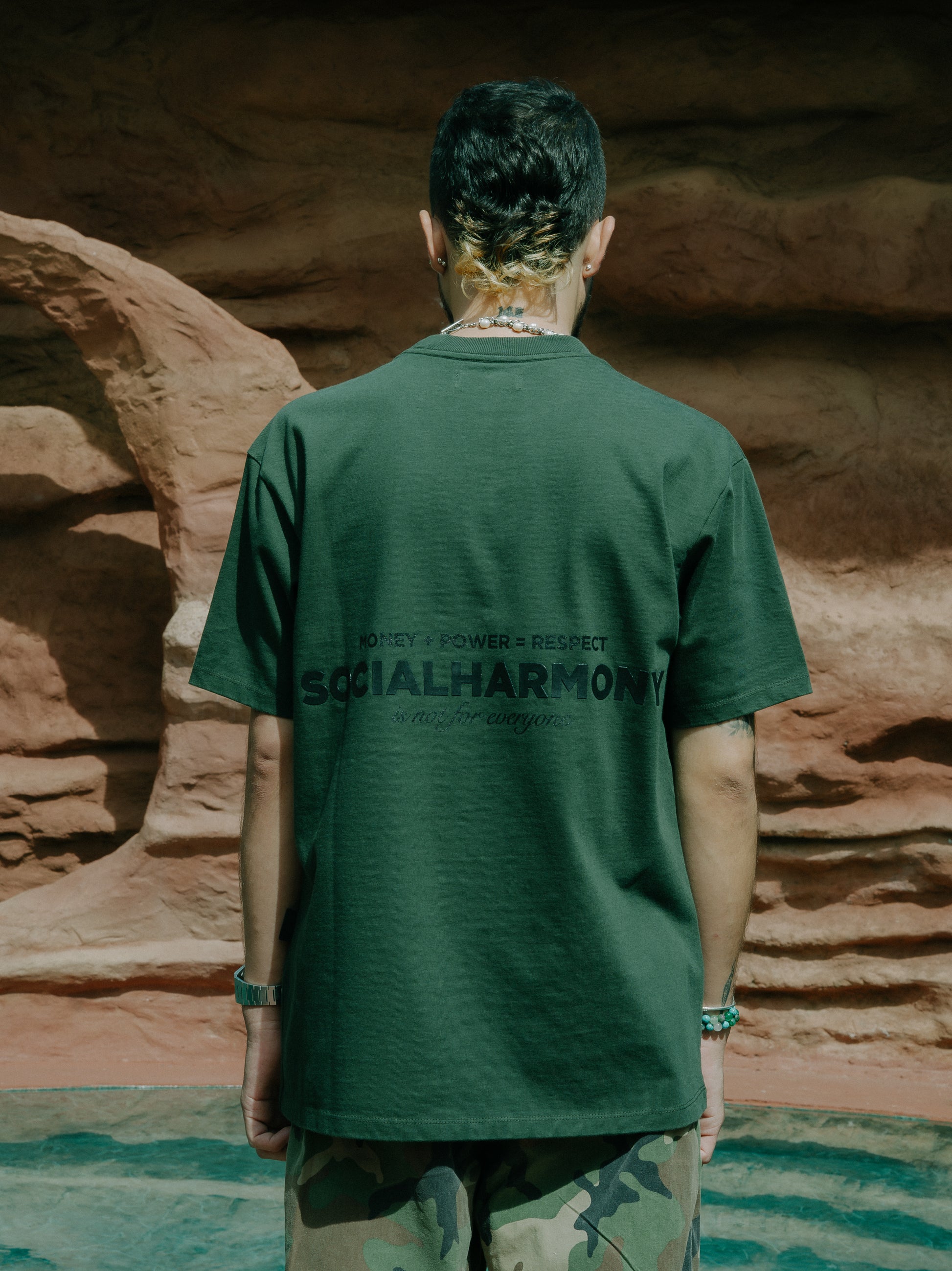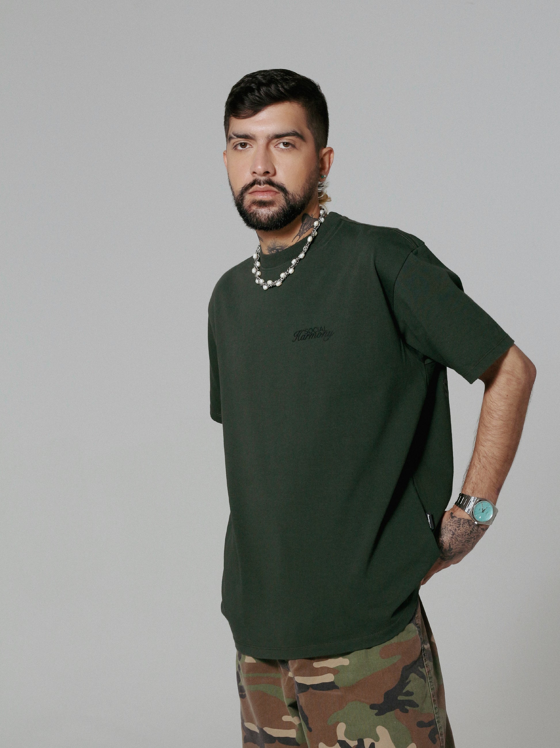 Unidad, identidad y pertenencia. Camiseta verde oliva con tipografía trasera en tono oscuro que se integra de forma sutil al color de la prenda. Fit cómodo, cuello redondo y algodón 100% que acompaña cada movimiento con naturalidad.
