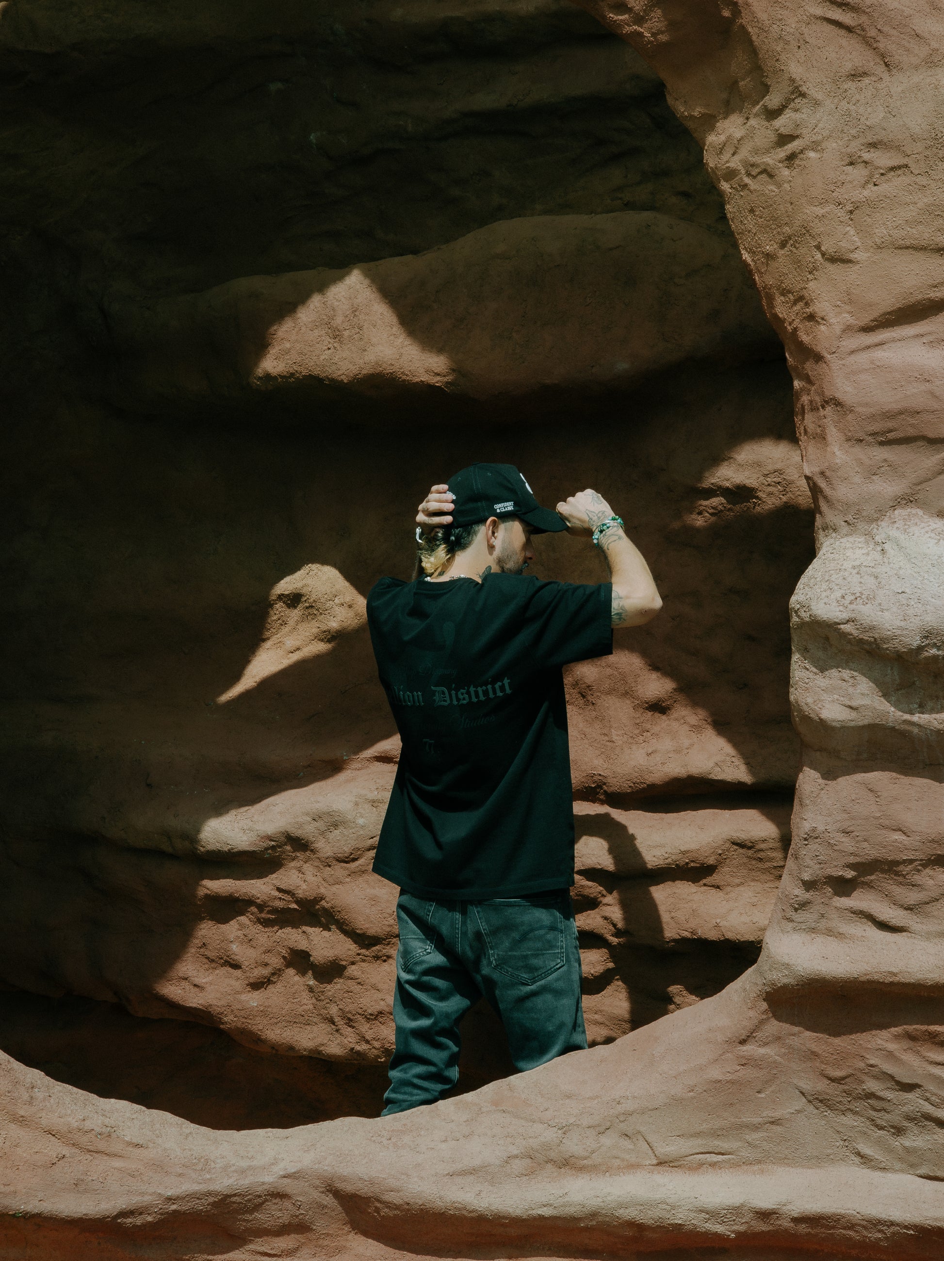 Evolución de un clásico. Camiseta negra con gráfica trasera oscura integrada al fondo. Fit relajado y algodón suave que mantiene la esencia con una nueva lectura.