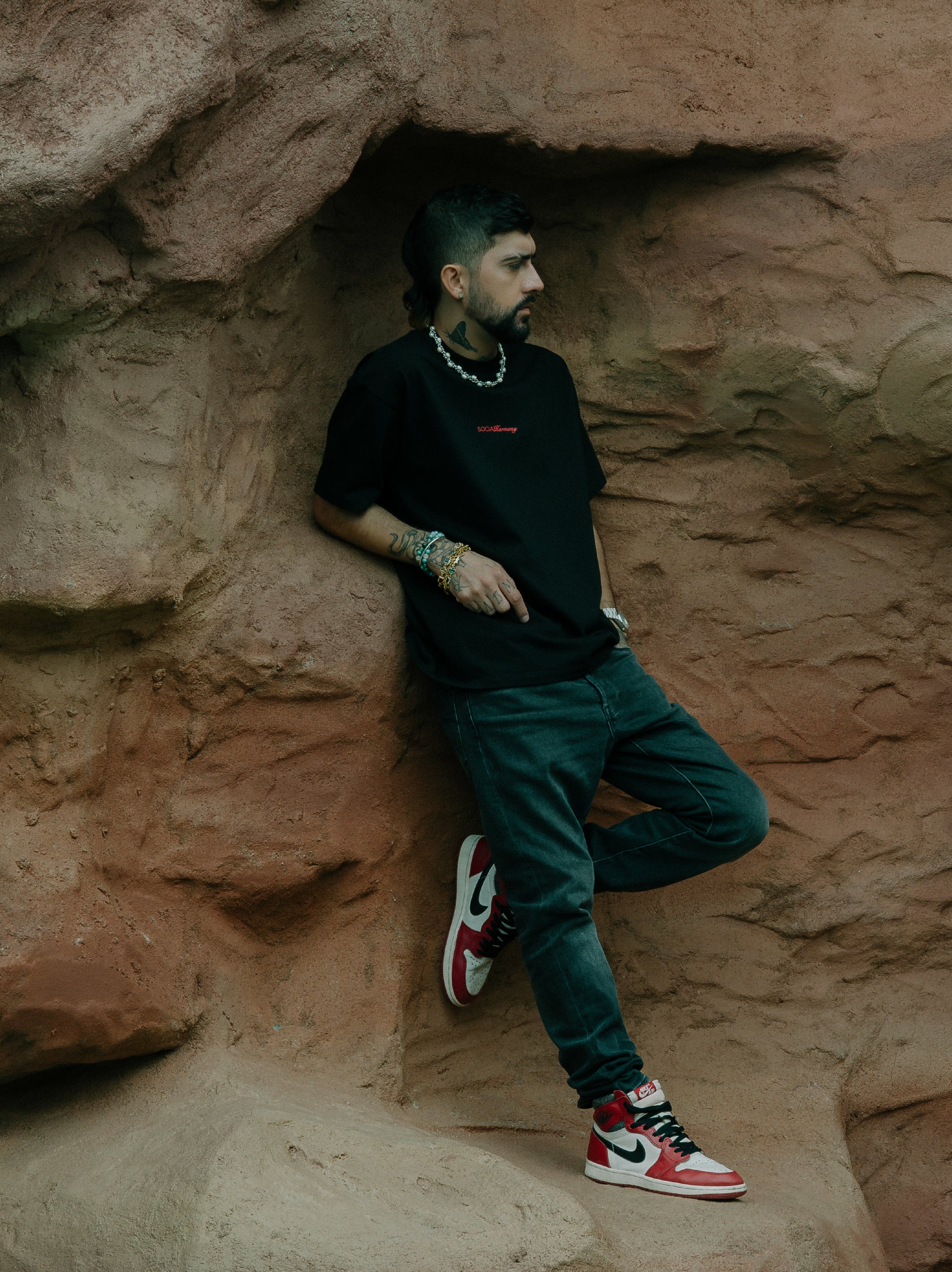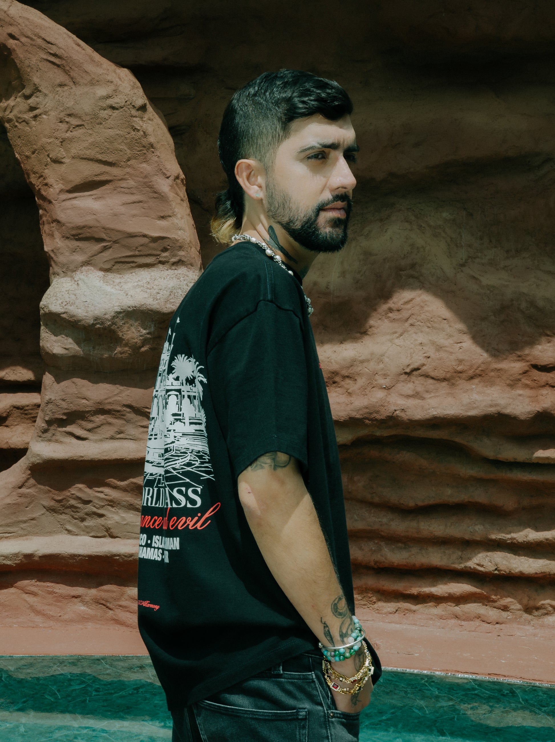 Minimalismo con intención. Camiseta negra con gráfica posterior de inspiración simbólica y detalle frontal discreto. Su silueta cómoda y su algodón 100% ofrecen una prenda versátil, pensada para destacar sin exceso.